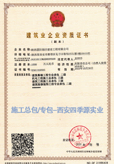 • 西安四季源實(shí)業(yè)專業(yè)代辦建筑資質(zhì),升級(jí) 增項(xiàng) 延期
